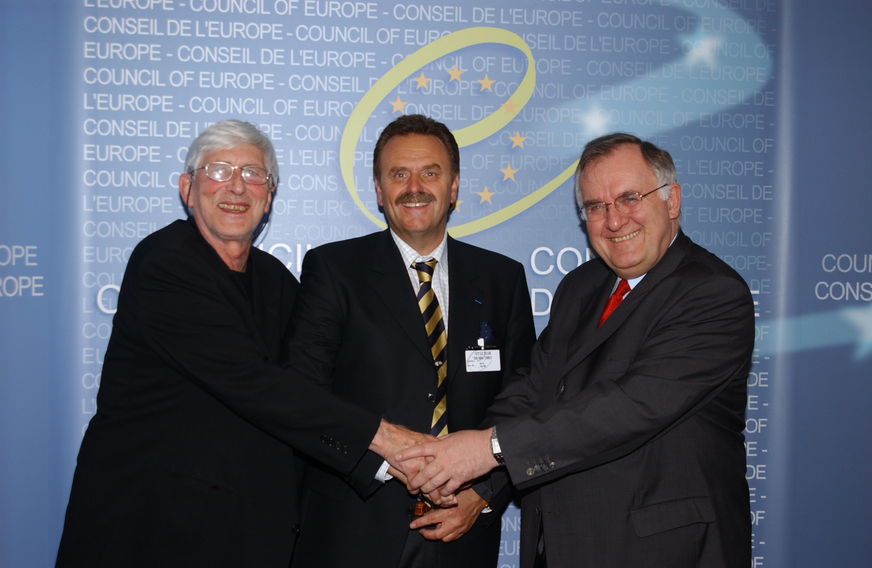 Tomi Ungerer war wie Roland Mack auch „Sonderbotschafter des Europarates für Familien“. Hier mit Walter Schwimmer (ehemaliger Generalsekretär des Europarates)