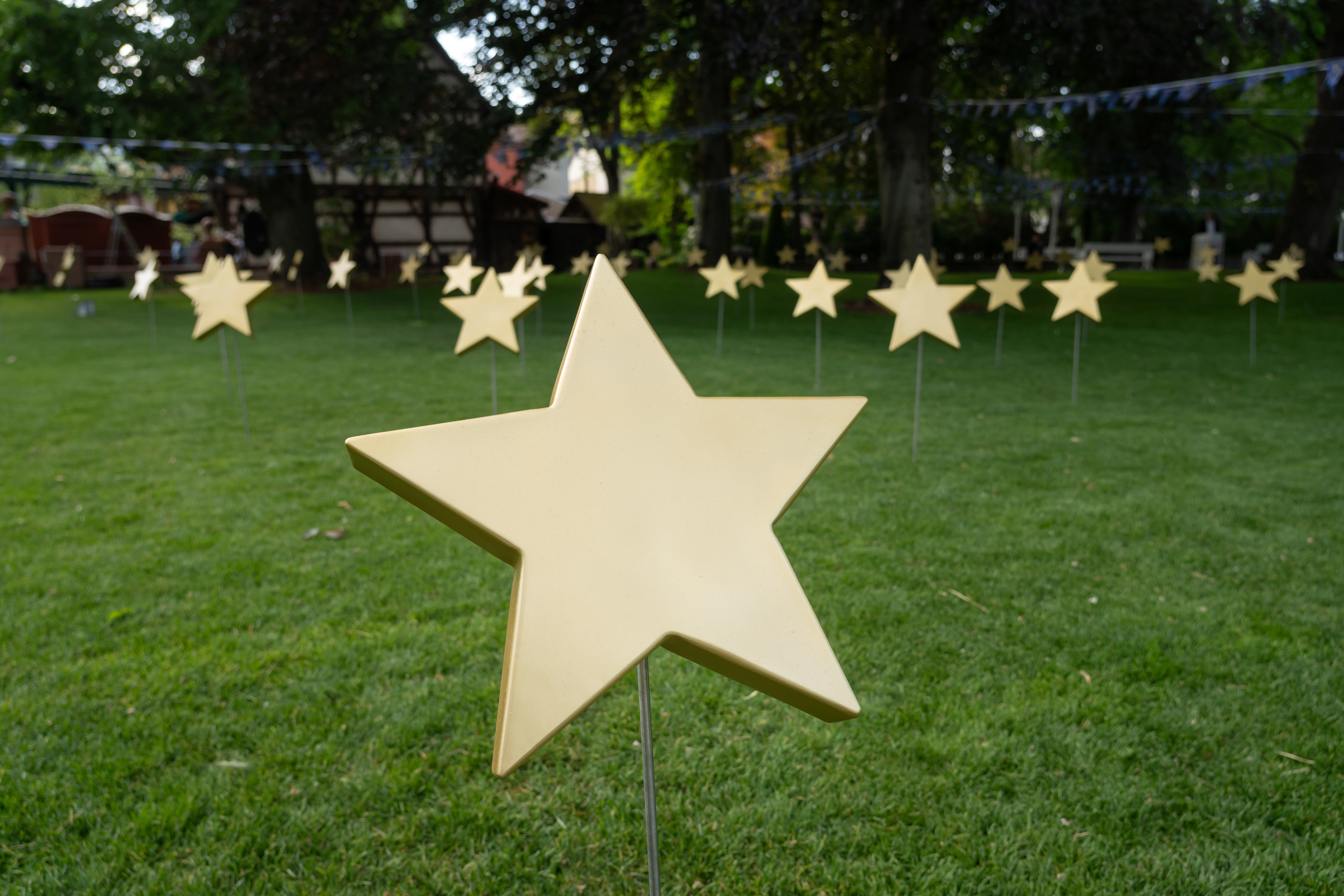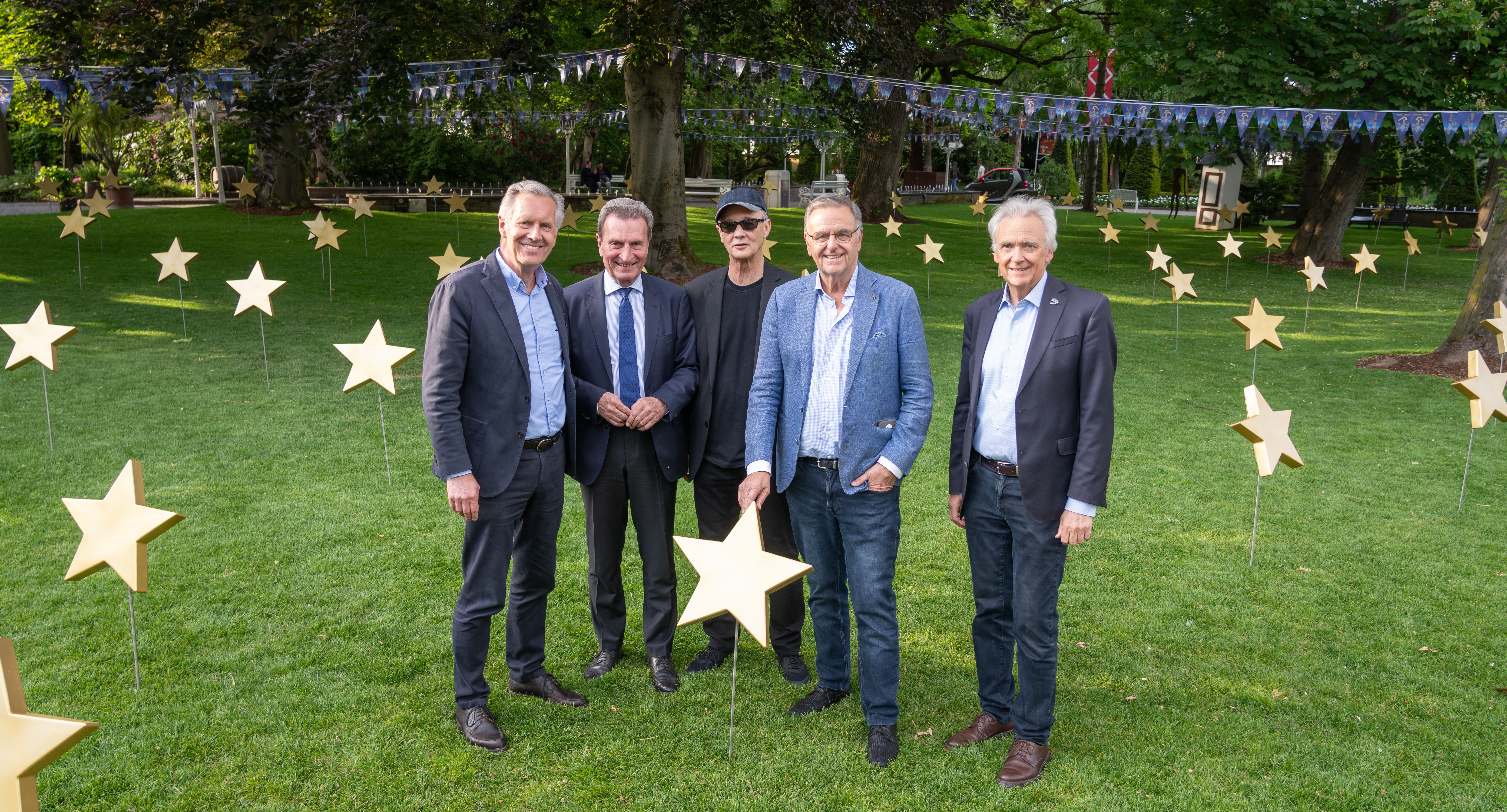 Christian Wulff, ehemaliger Bundespräsident, Günther Oettinger, ehemaliger EU-Kommissar, Ottmar Hörl, Konzeptkünstler, Roland Mack und Jürgen Mack, Europa-Park Inhaber, im "Europa - Garten der Sterne"