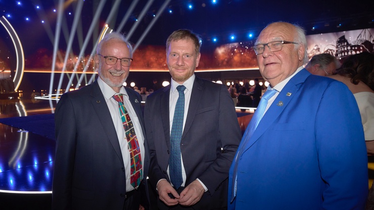 Ministerpräsident Michael Kretschmer (Mitte), Ernst Schilling (links) und Martin Herrenknecht