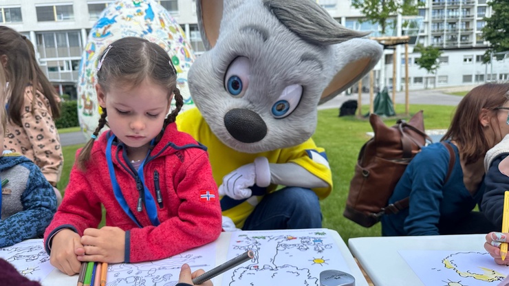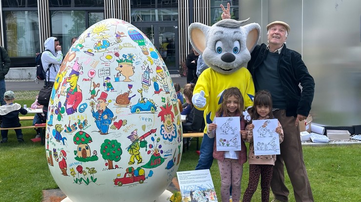 Riesiges Osterei aus dem Europa-Park auf Vorplatz der Kinder- und Jugendklinik des Universitätsklinikums Freiburg