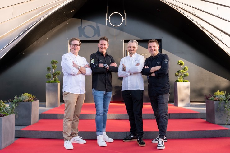 Caption: Leading chefs Paul Stradner, Christian Kuchler, Peter Hagen-Wiest and Stefan Heilemann (from left) together bring eight Michelin stars under one roof.